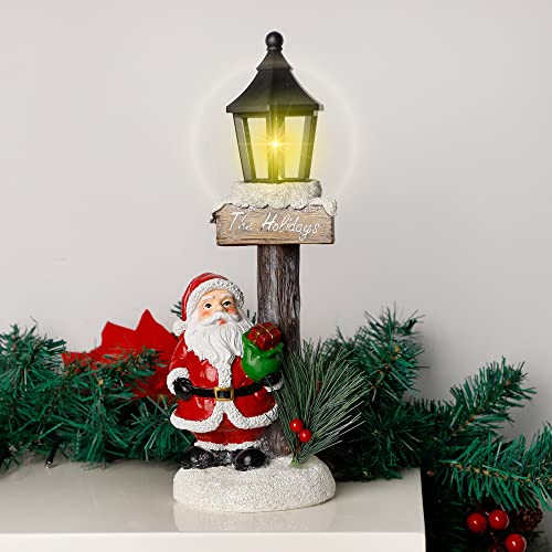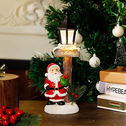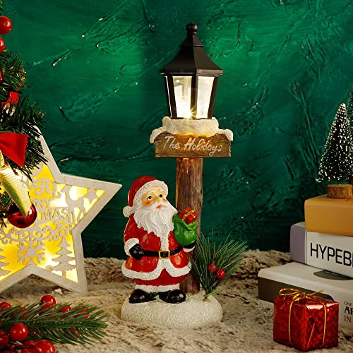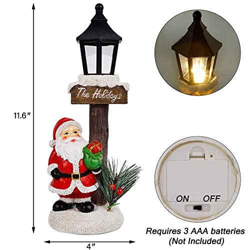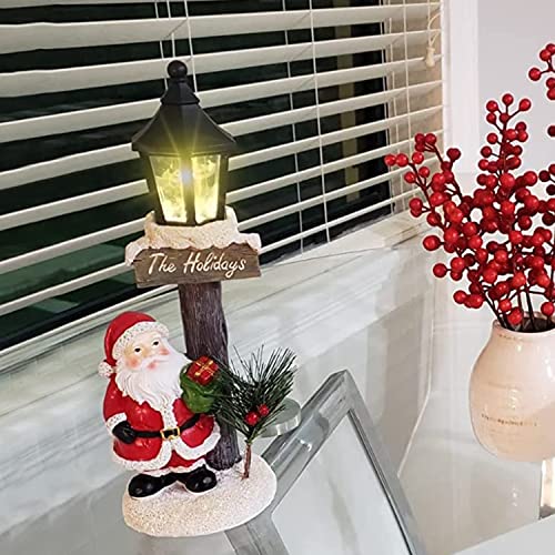 - 🎅 Santa Claus Lamppost: Christmas light up Santa Claus tabletop decoration is a perfect addition to holiday decor. Santa Claus with his gift box standing by the lamppost, waiting for Christmas Eve to give out presents for people.