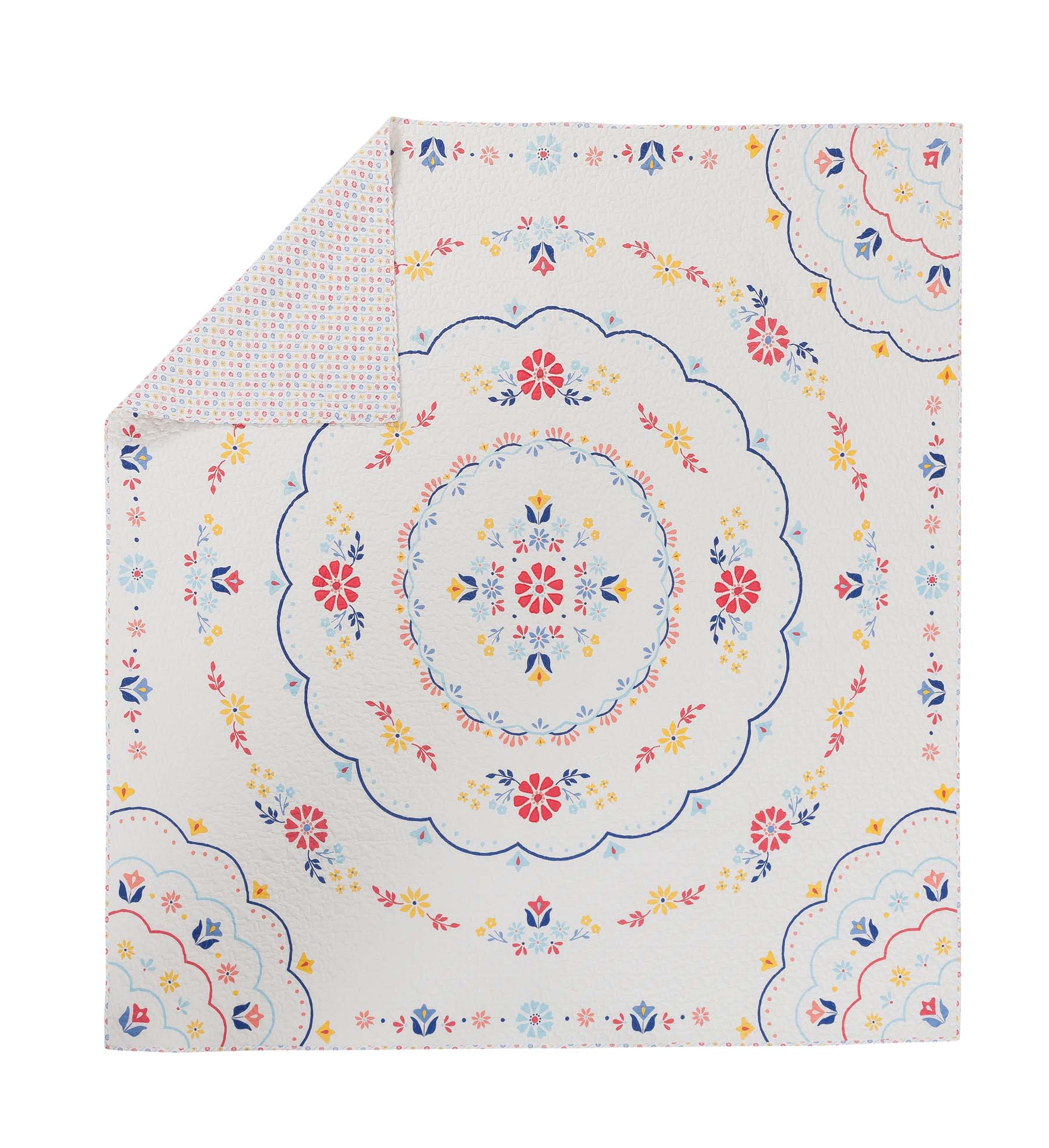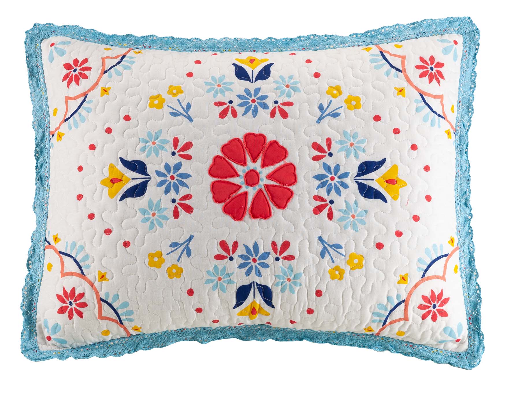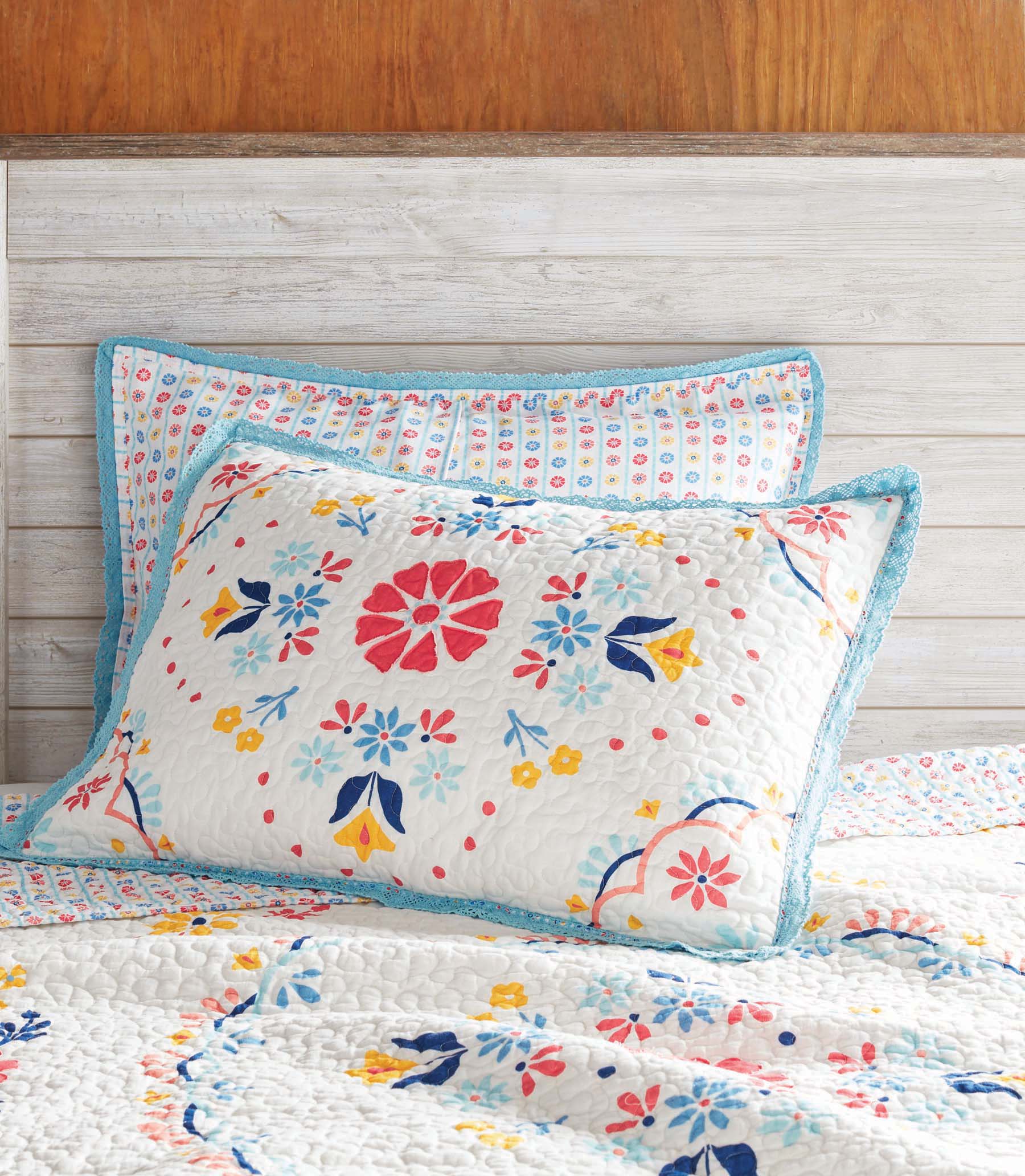 Introduce a little frontier flare to your bedding set with Mazie Medallion 2-Piece Quilt Sham Set. These high-quality quilted pillow shams feature a lovely design that combines sweet subtlety with classic florals. Each of The Pioneer Woman Mazie Medallion Quilt Shams has a cotton face that’s decorated with cheerful floral appliques, an elegant, crocheted border, and a poly back to give it a cozy, homemade vibe. authentic farmhouse. Update your bedroom with Mazie Medallion multi colored 2-Piece Quilt Sham Set.