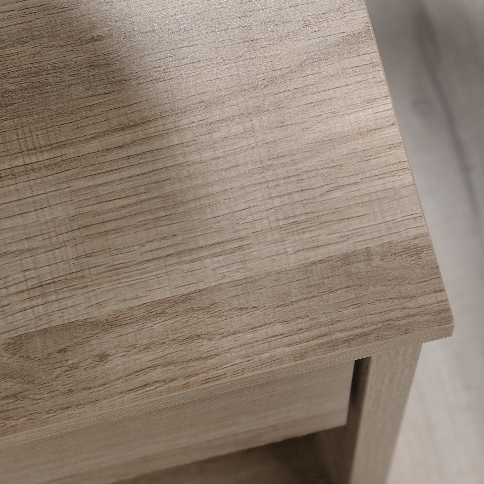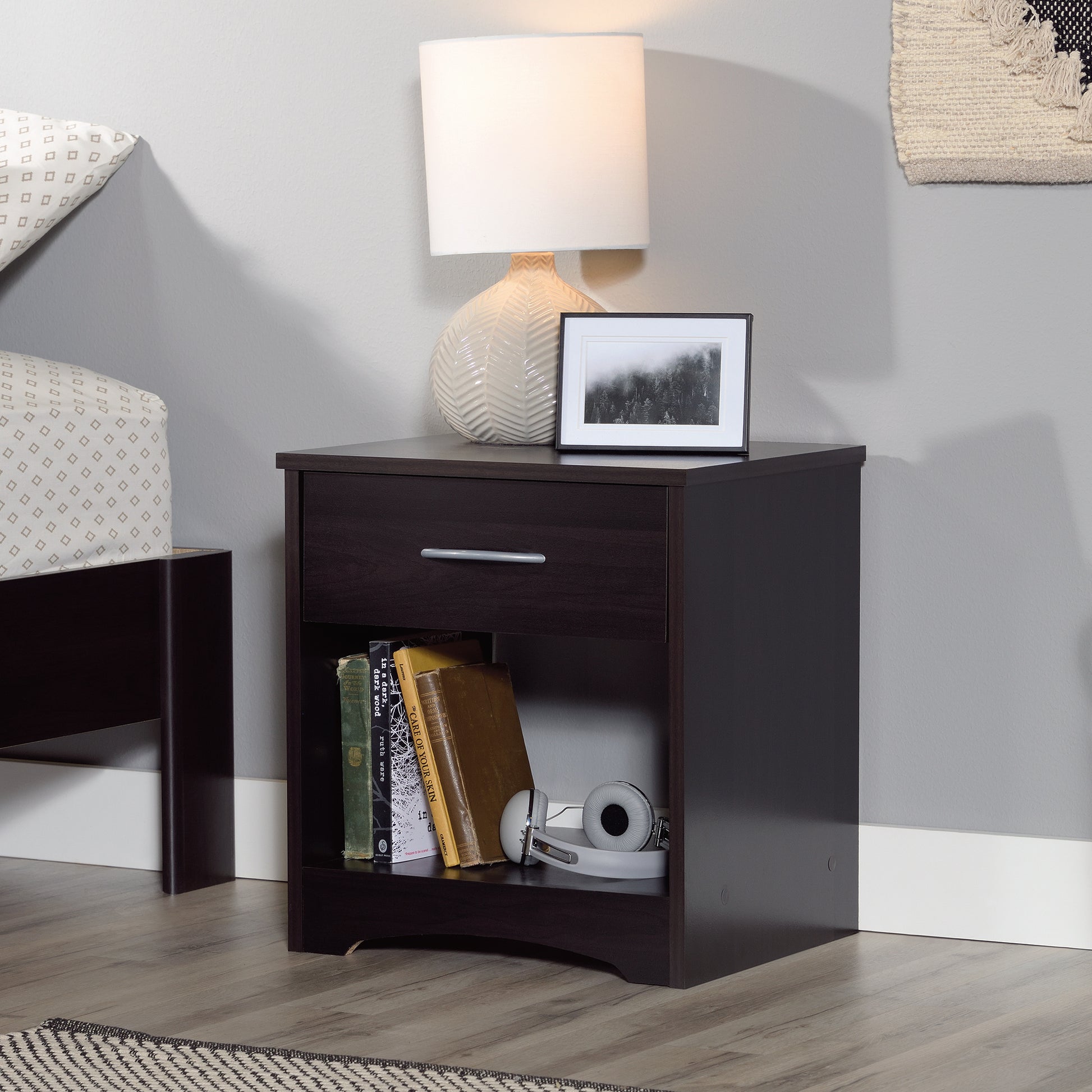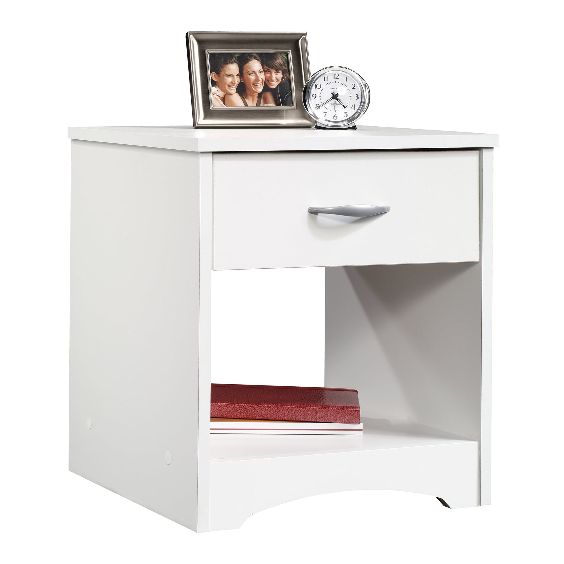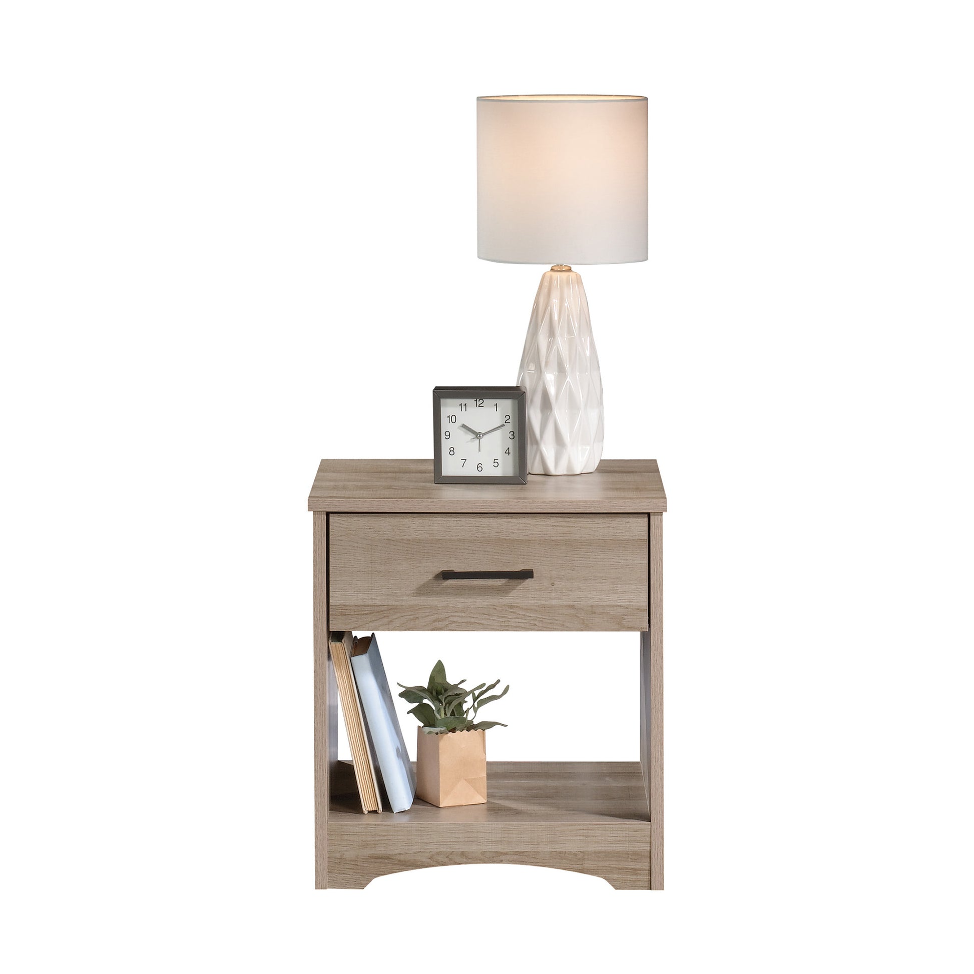 Looking to add some stylish bedside storage to your home? Check out these nightstands. It features one drawer that opens and closes on smooth metal runners, ideal for storing your favorite nighttime book, reading glasses, and the TV remote. Find even more storage on the lower open shelf, a great place to display books, photos, collectibles, and more. Available in Soft White and Brook Cherry finishes, this bedside table will put that finishing touch on your bedroom decor and help you contain the clutter. Sauder Beginnings Night Stand Features: Easy-glide drawer with safety stops. An Open shelf provides additional storage. We hope you like what you see. Sauder designers travel the world and bring back the best and latest in style, finish, and color trends. This inspiring world travel is evident in the cutting-edge and innovative furniture solutions we offer to you! *- Engineered wood construction *- Sauder Beginnings Night Stand assembled dimensions: 17.1" L x 14.7" W x 18.6" H *- Assembly required