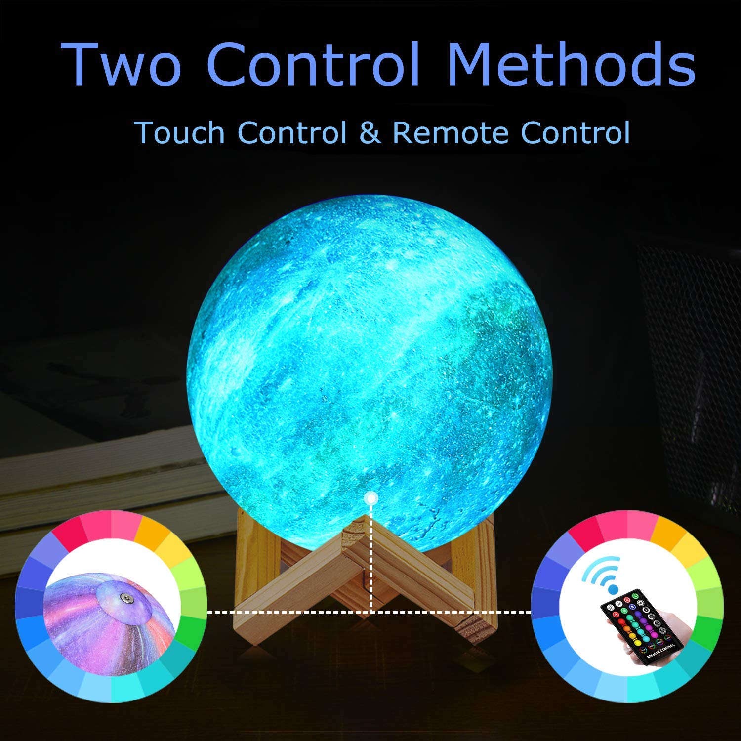- 🌟 Galaxy Moon Lamp - Moon Night Light with 3D printing technology, the surface of the lamp is very close to the moon; Color galaxy drawing make the ball colorful and gorgeous while it is lighting up, like the starry, Stimulate children's imagination and creativity, very novelty and charming;