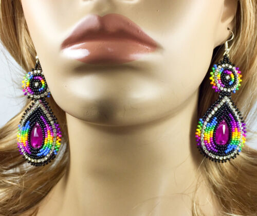 Native Style Beaded Teardrop Seed Bead Earrings Fashion Jewelry Ethnic Design
