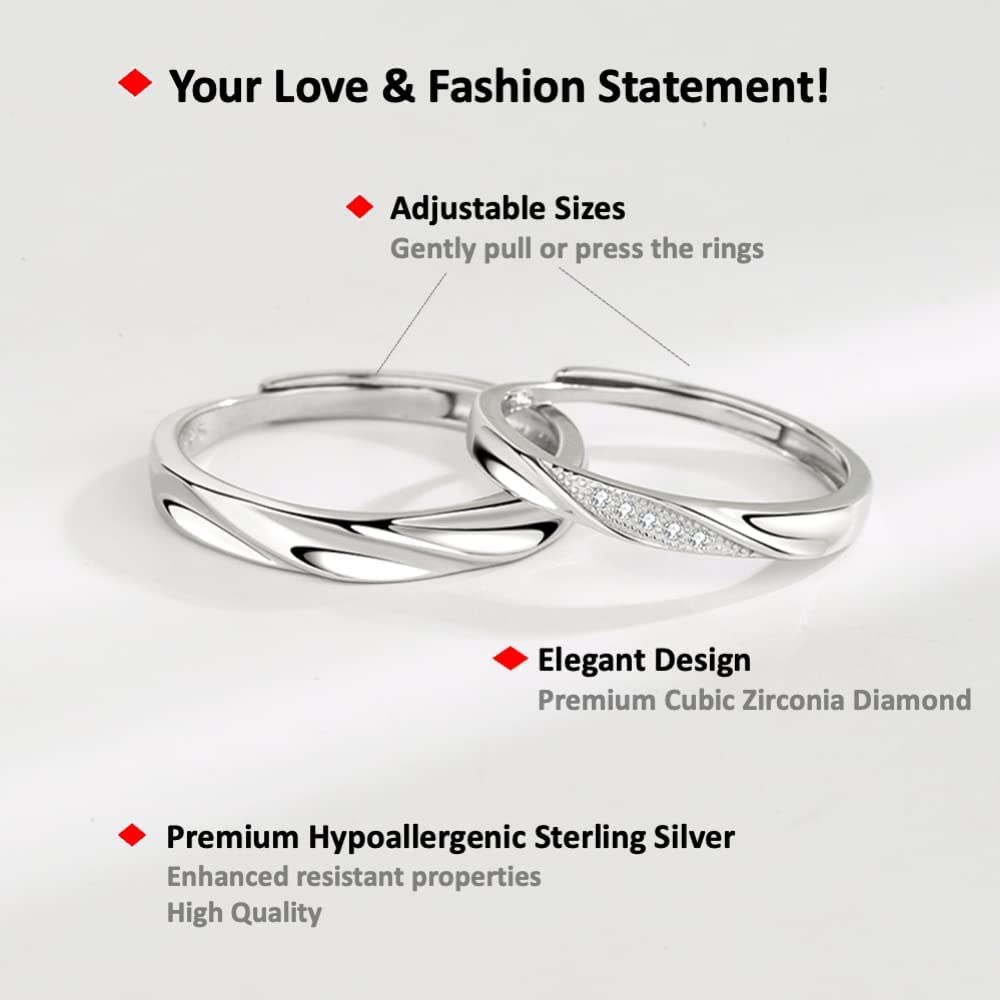 [New] Sterling Silver Couple Rings Set, Adjustable, I Love You Wedding Rings