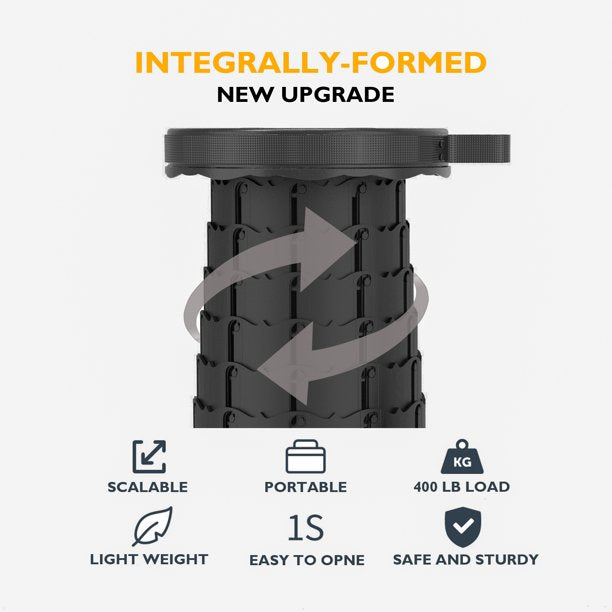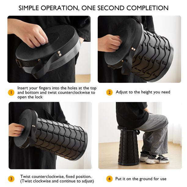 Portable Telescoping Stool, Camping Retractable Folding Stool w/ Carry Strap (Black)