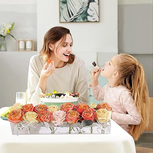 Premium Quality Luxury Rectangular Floral Centerpiece for Dining Table - 16 Inches Long Acrylic Flower Vase
