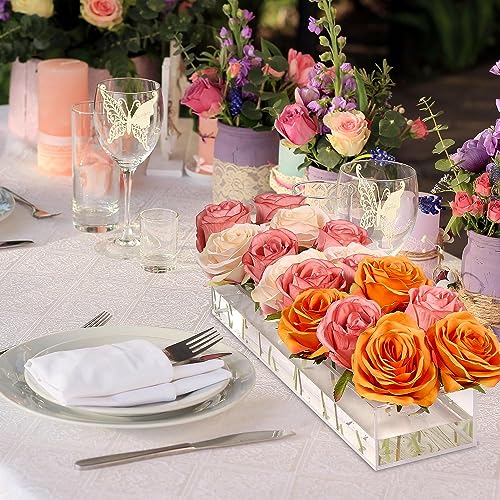 - High Quality Acrylic: No more fear of long vases for centerpieces breaking at the wedding - Our rectangular floral centerpiece is made of 100% ACRYLIC, durable, lightweight and drop resistant. Our clear acrylic flower eliminating the risk of water leakage while not causing any harm to the flowers -The design is strong and well-sealed providing excellent containment for liquids.