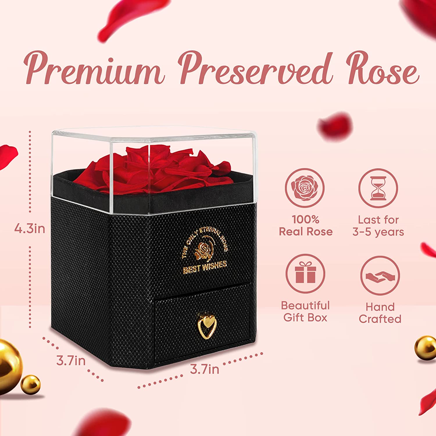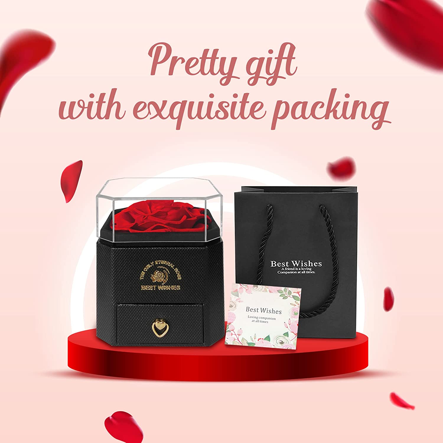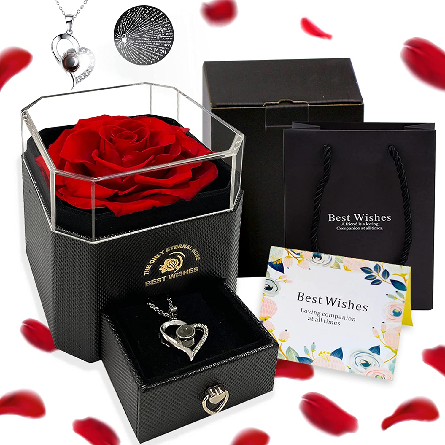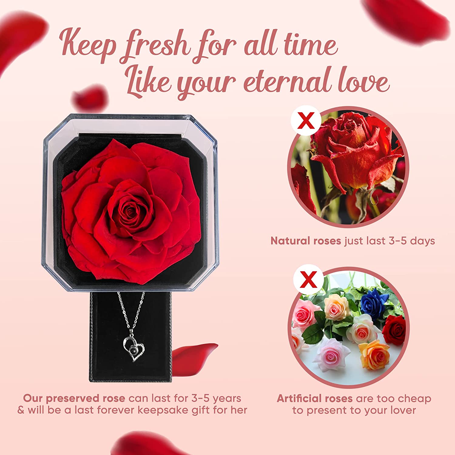 - 🎁 Best Gift for Your Lovers 🎁 With a luxurious box design, our eternal rose gift box is really a great gift for your women. Moreover, a rose with a necklace inside is also a great choice to present your love and your respect for your wife, your girlfriend, your mom, or your grandmom. They can use it like a pretty preserved flower rose decor that makes warm for their room.