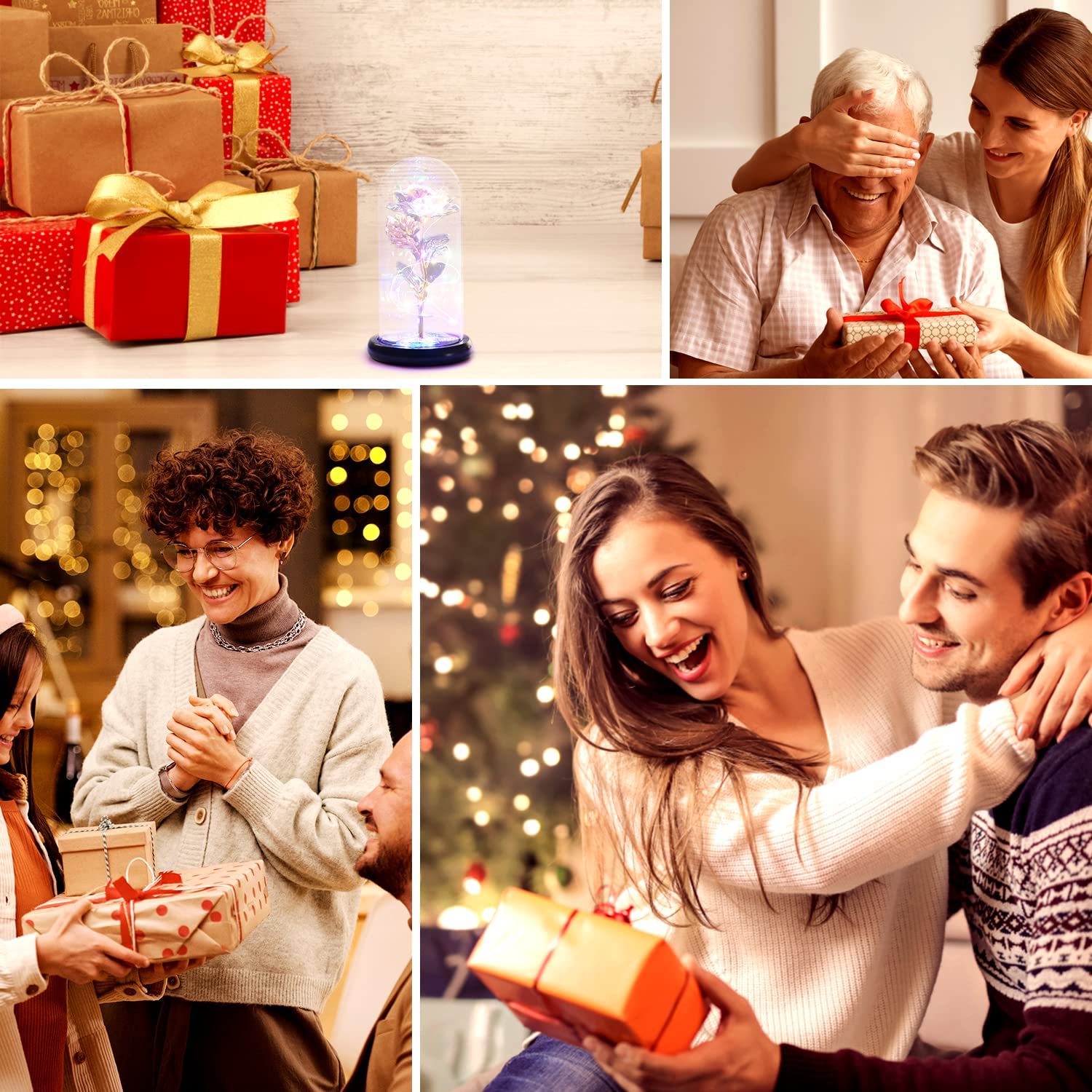- [Glass Dome & Black Smooth Wood Christmas Gifts] The glass dome is a beautiful dome-shaped display case that will reflect the colors of the iridescent flower and the base is made of black wood, which is stable and smooth surface without burr. The glass dome protects the rose from dust, moisture, and other environmental hazards without taking anything away from its beauty.