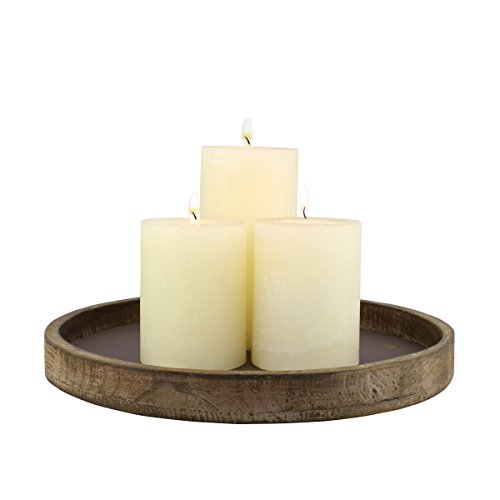 Rustic Natural Wood & Metal Candle Holder Tray