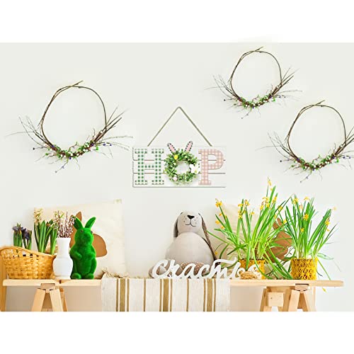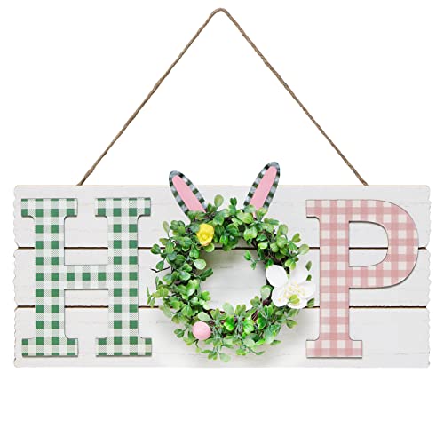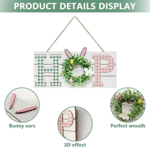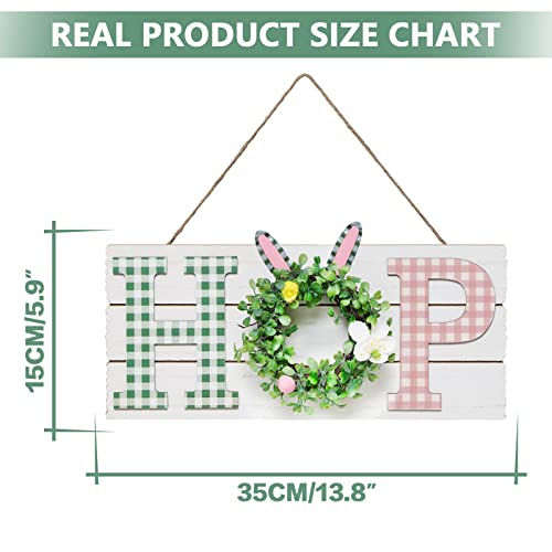 - Design: The Letter is HOP, The letter O is composed of a small wreath and a pair of rabbit ears. The letters h and P are composed of three-dimensional Wooden Letters, so the board pendant looks very interesting. Hanging on the front door or wall, it can add more fun to your Easter.