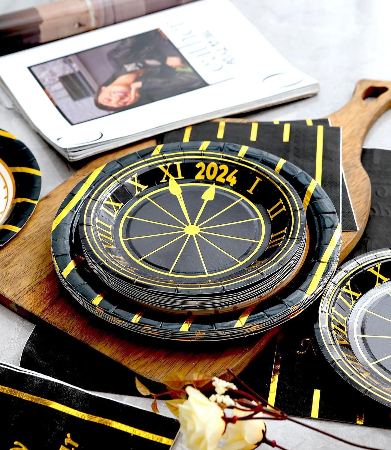 - 𝗜𝗗𝗘𝗔𝗟 𝗙𝗢𝗥 𝗡𝗘𝗪 𝗬𝗘𝗔𝗥: This party pack is perfect for a new year celebration! This set has everything you need to create a dream, picture-perfect party for 16 guests. You don't need to spend time buying party supplies from different stores. Winoo offers all the tableware set you need.
