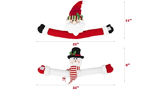 - Premium Quality - Made from flannel and fabric material.Supper soft,lightweight and good feeling,not easy to pilling or fall off.Package includes one pair Christmas Curtain Tiebacks.Snowman measure 19.7” x 8.8” ( expanded), Santa Claus measure 20.7” x 11.8” (expanded)