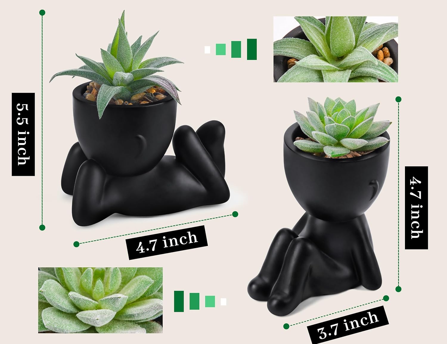 - 【Succulents Size】There are two packs succulents plants artificial, the sitting one is about 5.5 inches tall and 3.9 inches wide, and another is bout 4.1 inches tall and 4.73 inches wide