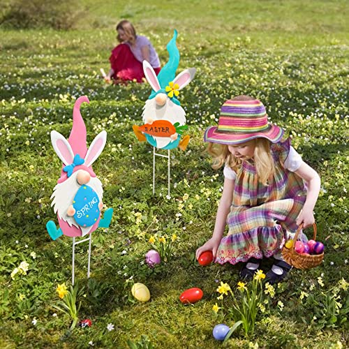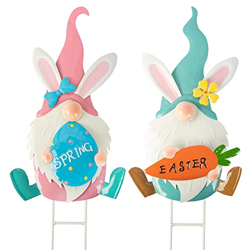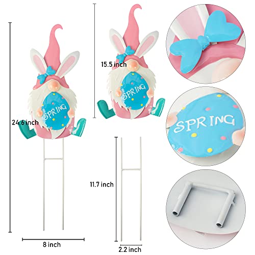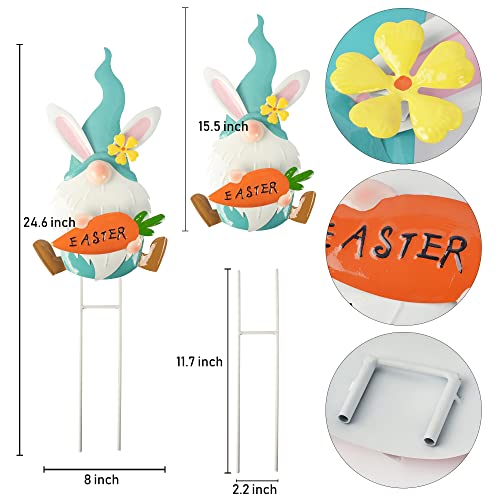 Set of 2 Metal Easter Gnomes Yard Signs Outdoor, 24.6 Inch