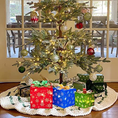 - Classic design: White snowflakes, reindeer, socks, Christmas tree, bells, snowman, Santa Claus and candy cane classical patterns are printed on the different color fabric of the gift box. The combination of different colors is pleasing to your eyes. The interior is equipped with 50 warm white LED lights, which can emit a wonderful fairy-tale sparkle effect on New Year's Eve.