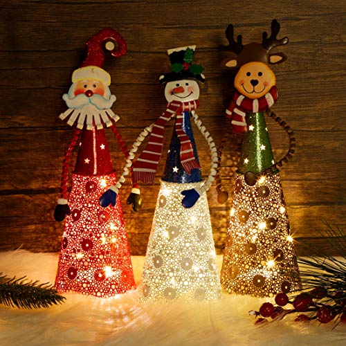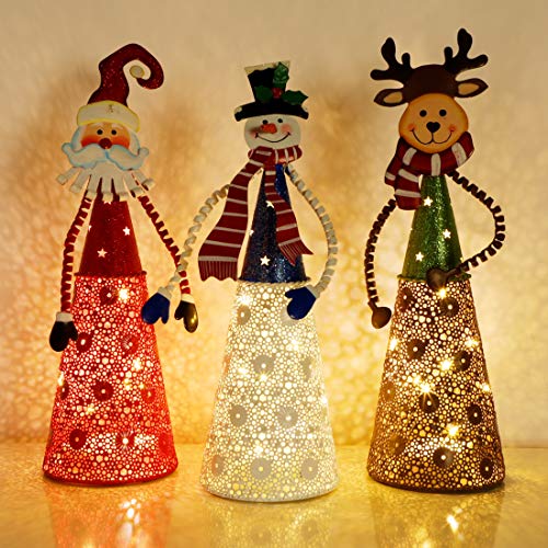 - 🎅 Unique Christmas Light: Set of 3 Christmas table decoration with led lights includes 3 elegant and unique Christmas designs, red Santa Claus, brown reindeer and white snowman, brings holiday cheer to your space, adds a festive look to your holiday seasonal layout and welcomes your guests with warm wishes.