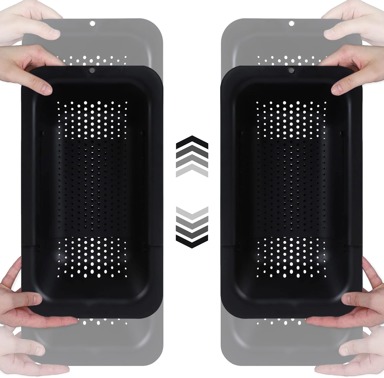 Sink Colander Baskets - (Pack of 2) Wash Vegetables and Fruits, Drain Cooked Pasta and Dry Dishes - Extendable - New Home Kitchen Essentials (2 Black)