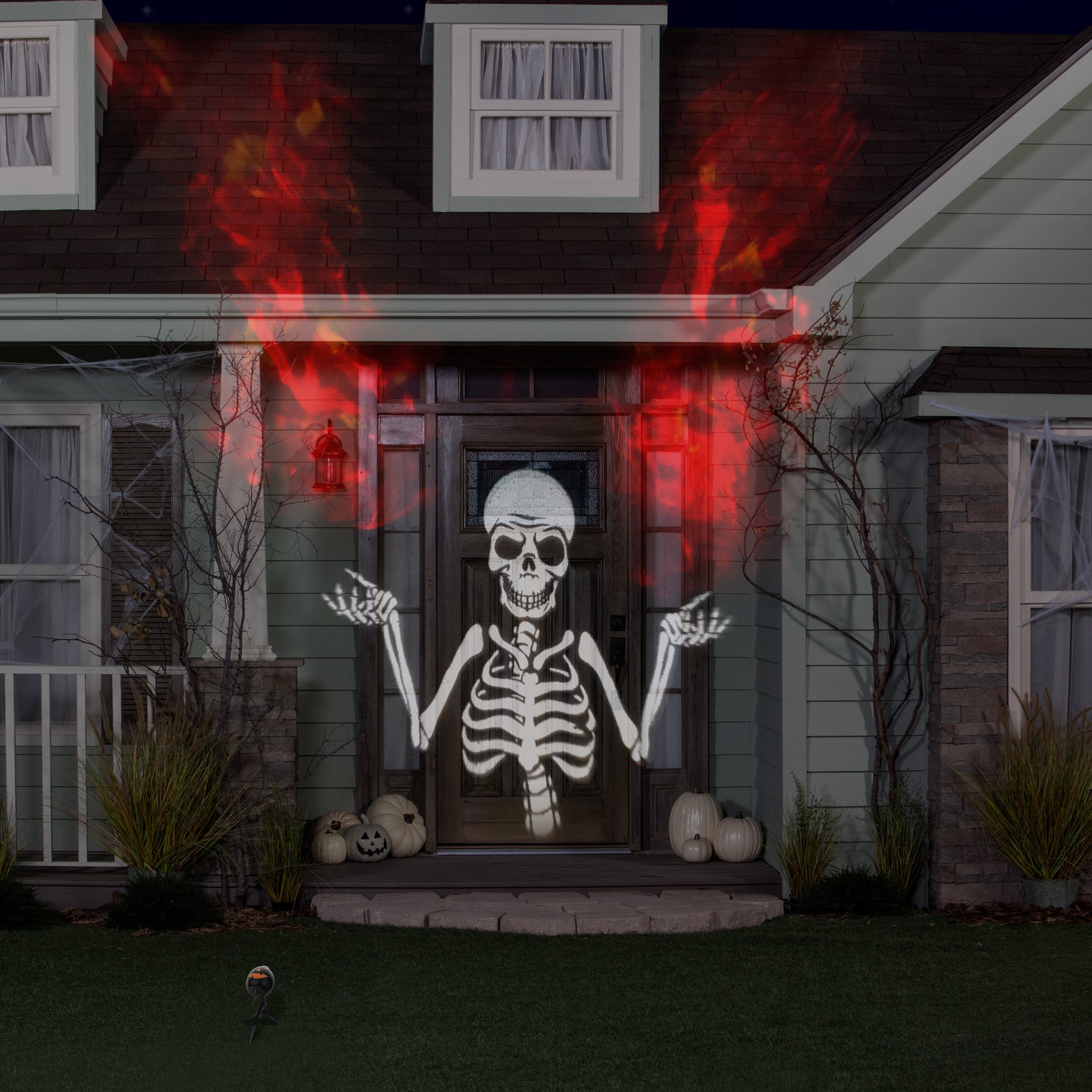 VENDOR LABELLING Create a spooky Halloween light show with the Halloween Lightshow Projection Silhouette Pennywise. Just stake it into the ground, plug it in and including exterior or interior walls, living spaces, front doors, porches, garage doors, fences, trees, and shrubs. Perfect for indoor or outdoor Halloween decorations, parties, and celebrations, or creating a dramatic focal point. It features an image of a blazing skeleton with hot flame hands. You can combine with multiple to create an over-the-top experience your guest and family will love. Decorate your home this Halloween with the Halloween Lightshow Projection Silhouette Pennywise. VENDOR LABELLING Halloween Lightshow Projection Hot Hands Skeleton: *- Projects an image of a blazing skeleton with hot flame hands *- Point it at your wall, garage door, fence, or any other flat surface *- Use it on indoor or outdoor surfaces