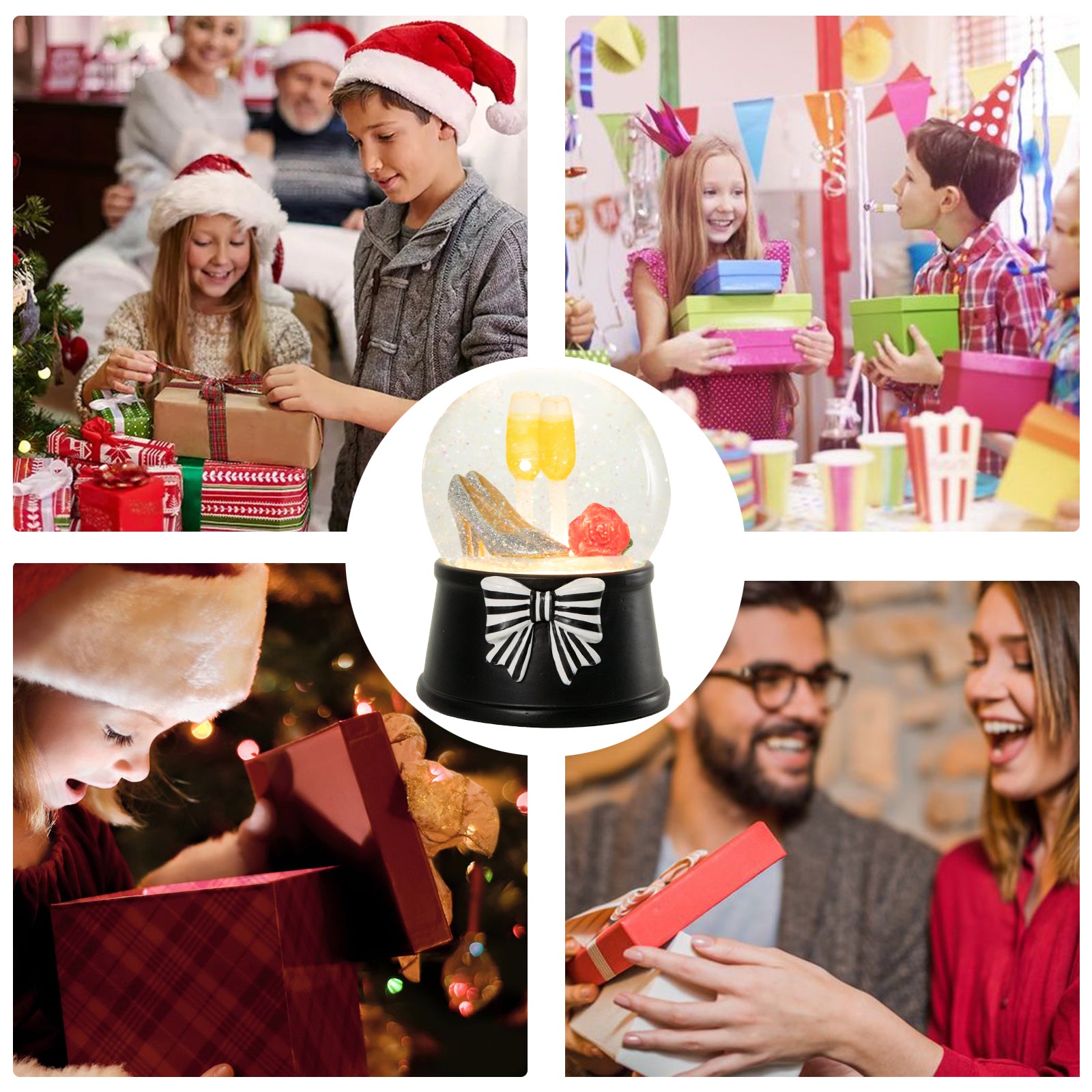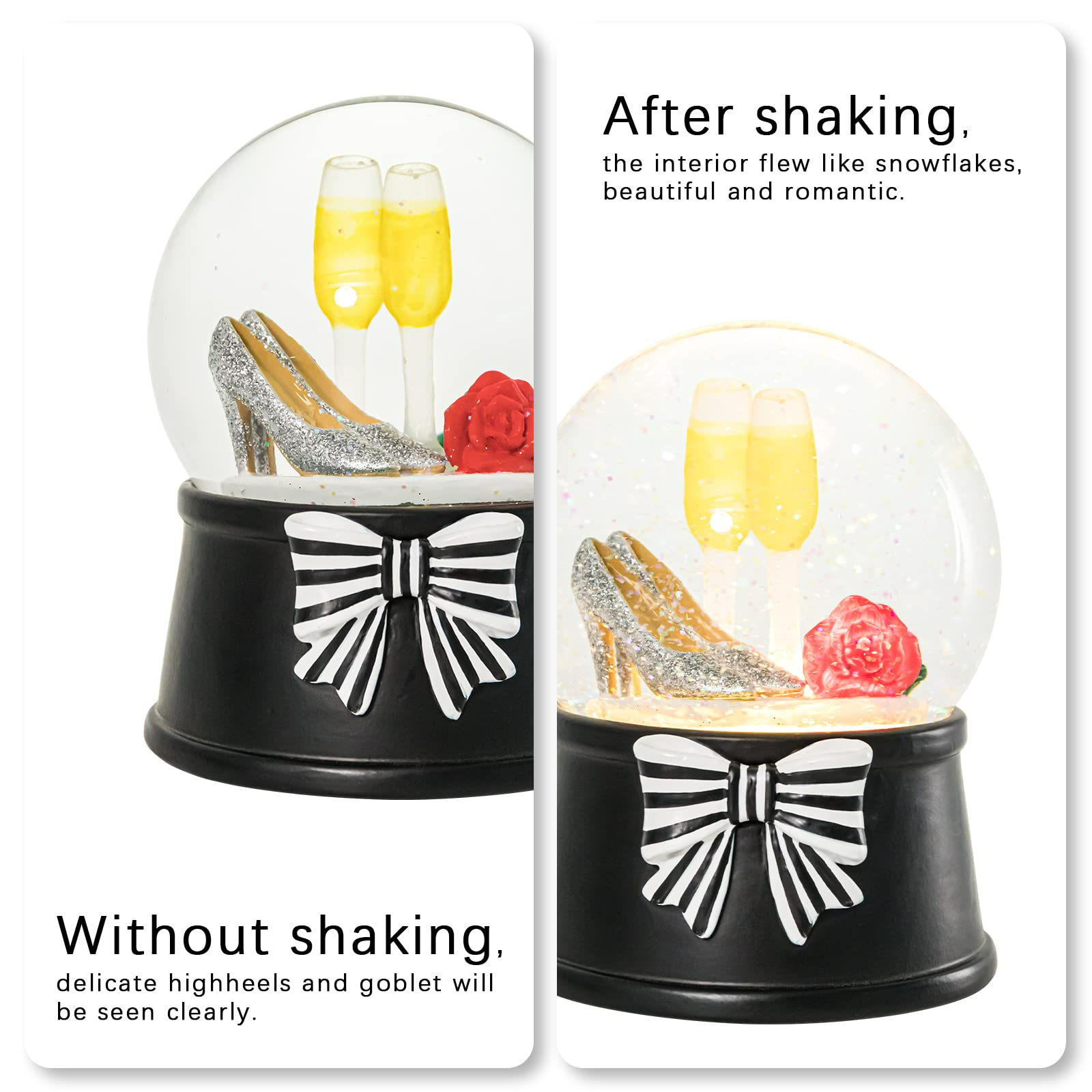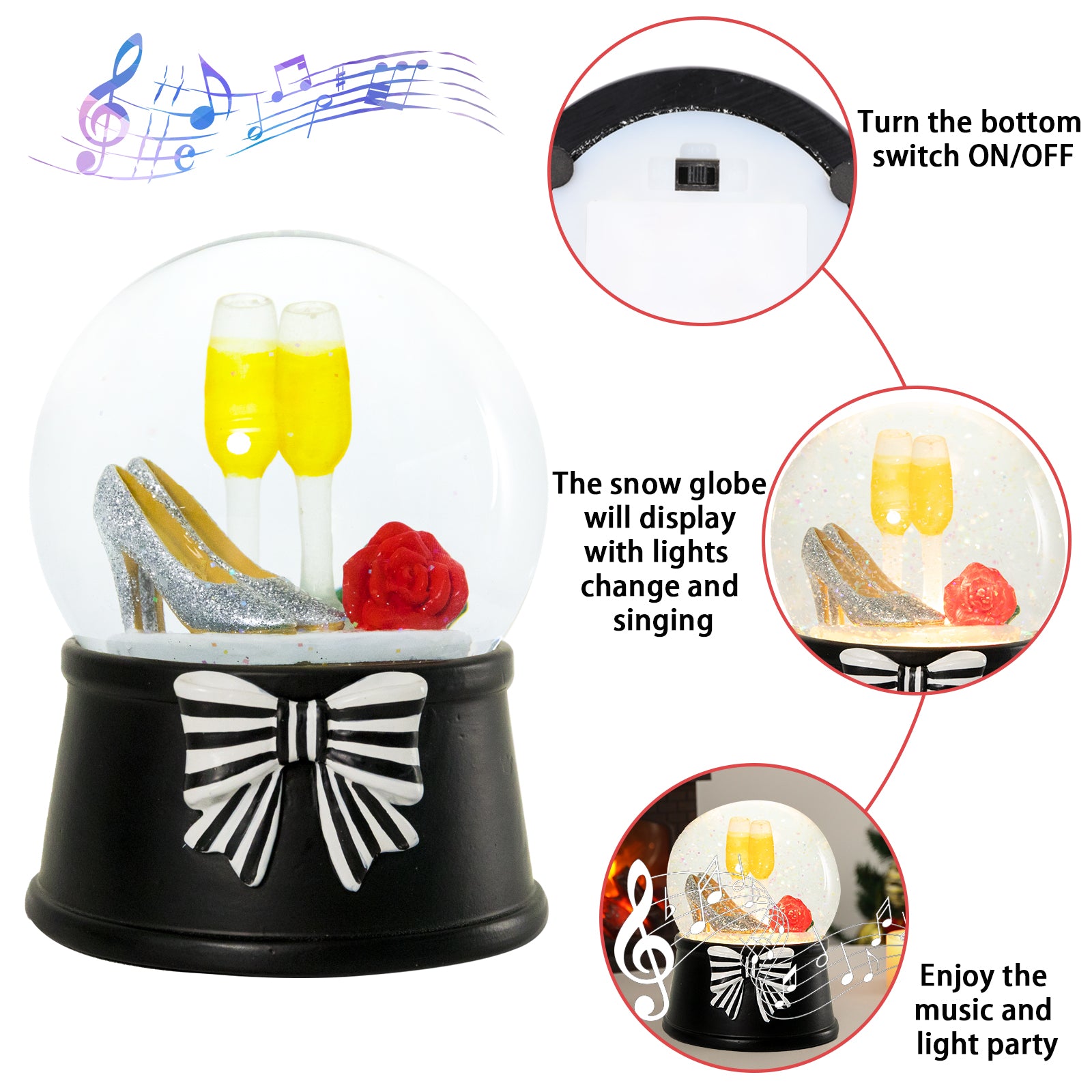 Add this beautiful snowball to your collection. The large glass dome will contain water and sparkling snow when it sways. Beautiful high heels paired with red roses and wine glasses. Use this unique image as a special gift and give it to your wife and girlfriend. This snowball is the perfect gift suitable for any occasions . *- Lovely design:The High heels, goblet and roses in the snow globe form a happiness scene. With the melody of "For Elise", the snow globe will constantly change its color, creating romantic and happy lighting effects. This will be a great gift. *- Perfect Size:The 5.7 Inch high Clear glass Crystal shoes Glass Ornament Ball is the perfect way to complete the decoration of your home Christmas. Match your Christmas lights with this Xmas glass ornament, share the around with sheers of the festival. *- 【Home Decor】It can be decorated anywhere you like, bedside tables, bookshelves, window sills or tables, etc.,and become a companion in your life, as well as a beautiful memorial. *- A impressive Gift for Her - No matter how old she is, the snow globe will be always be an impressive present for your love. Romantic Snow Globe is also a great gift for your mother,wife, or your daughter. *-