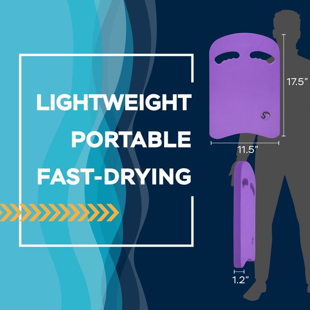 Ergonomic Kickboard is the perfect addition to your pool. For beginner and advanced swimmers, it features two handles with grooves for your fingers, allowing you to exercise with perfect form. It is lightweight, portable, fast drying, and chlorine resistant.