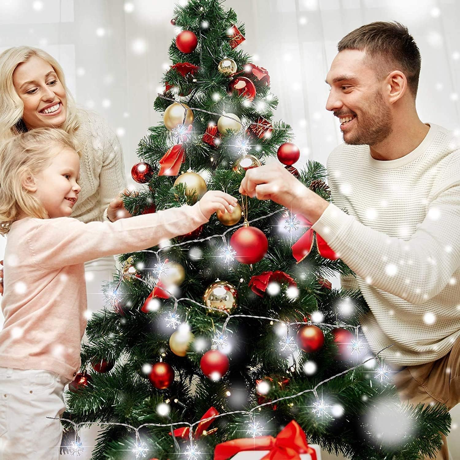- SPECIAL SNOWFLAKE SHAPE DESIGN Snowflake light string includes 40 independent snowflake. Each snowflake contains an LED that emits a warm white light. The snow pattern design is perfect for Christmas decoration to in harmony with the environment, which is helpful for enjoying unforgettable moments.