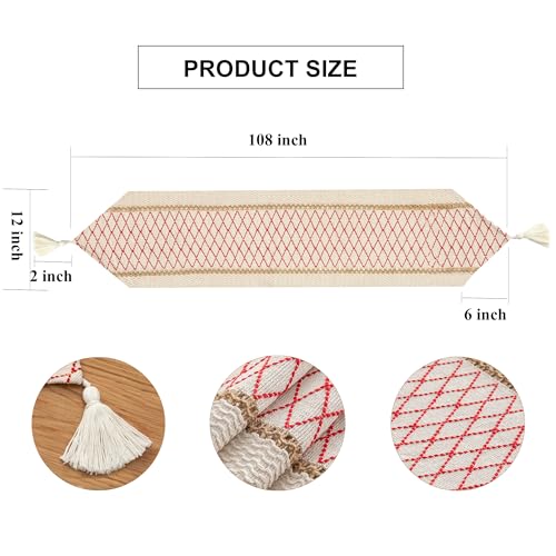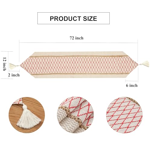 Table Runner, Boho Style with Tassels, Cotton & Linen, Farmhouse Home Decor for Living Room Dresser Scarfs