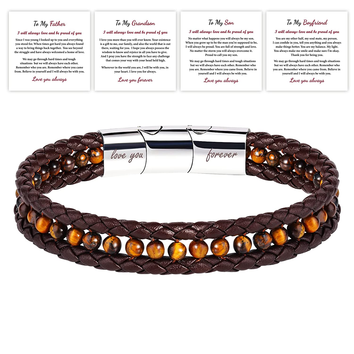 - 【Reminder of Love And Strength/Love You Forever】 A jewelry piece with the heartfelt message 'love you forever' symbolizes your deep and special love, making it a truly meaningful gift that will be cherished forever by your loved one. This braided leather bracelet is the perfect gift for your father, or even for yourself as a special reminder of love and strength.