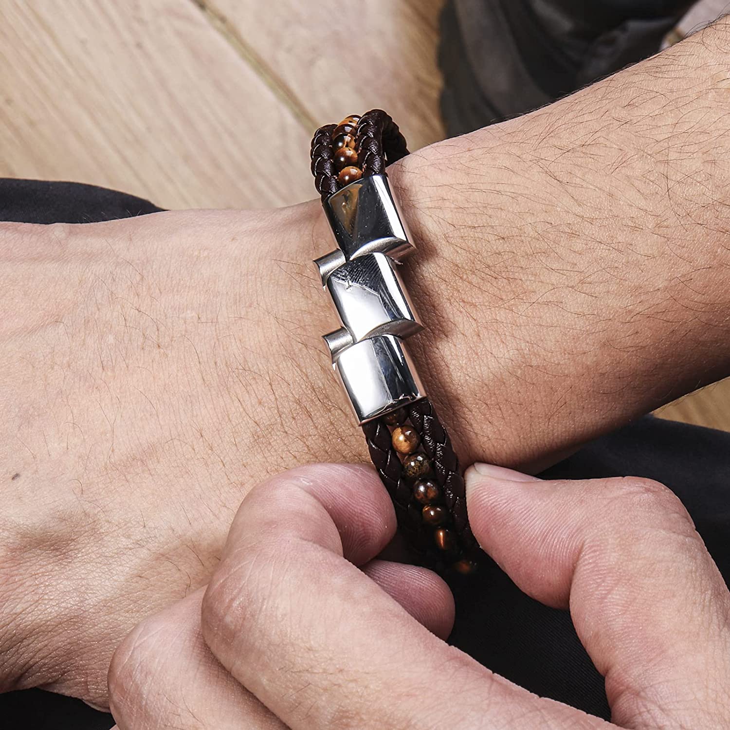 - 【Powerful Tiger's Eye Bracelet】 Leather, stainless steel and tiger's eye come together in perfect harmony in this bracelet! Tiger's Eye bead bracelet boasts a brilliant luster from every gem representing power , confidence and inner strength .