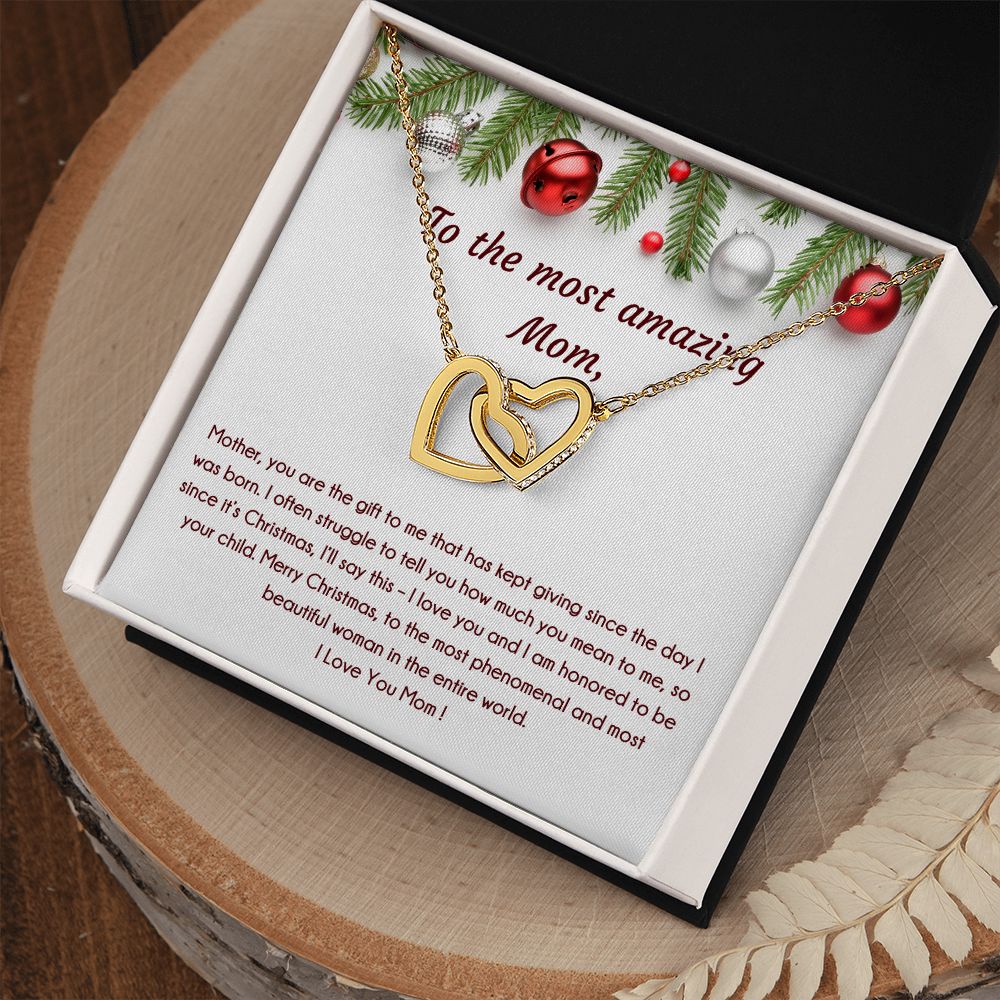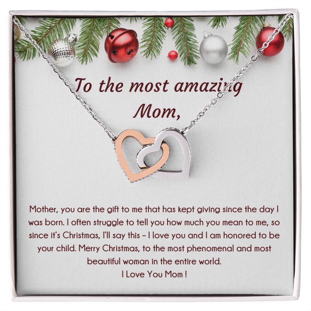 To The Most Amazing Mom, Christmas Special Interlocking Hearts Necklace (Yellow & White Variants)