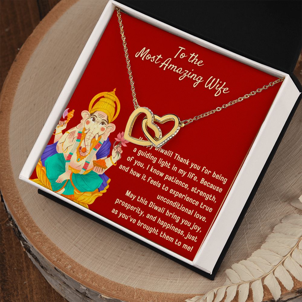 To The Most Amazing Wife Interlocking Hearts Necklace Blessed By Lord Ganesh Diwali Gift Set