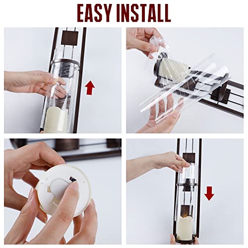 - EASY TO INSTALL- Features lightweight and durable. Mount onto wall from front using screws. Install the battery for the candles. It is easy to install this hanging wall sconce.