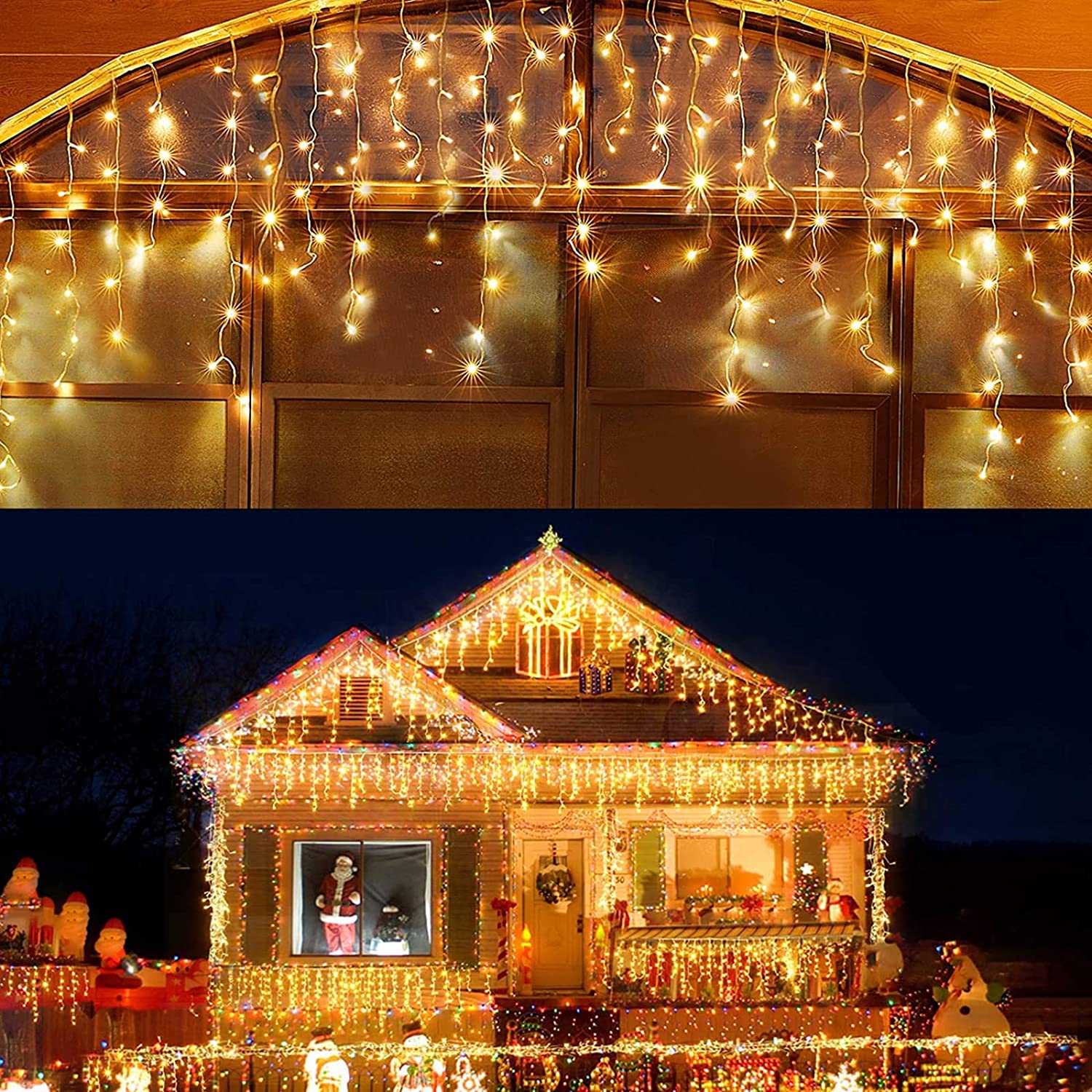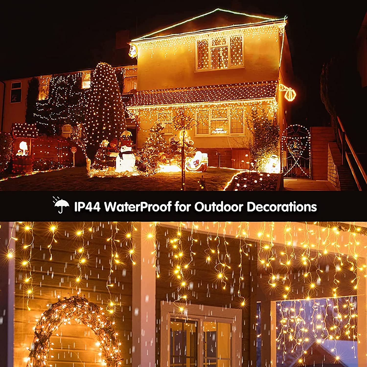 - Waterproof for Outdoor & Indoor UseAll of our led outdoor christmas lights are constructed with high quality material and designed to withstand rain or heat, so you can confidently leave them on display through summers and winters. Perfect for indoor & outdoor decoration. Lights can be utilized both indoor and outdoor without worry of rainy weather, the high quality wire can keep the lights cool to touch.