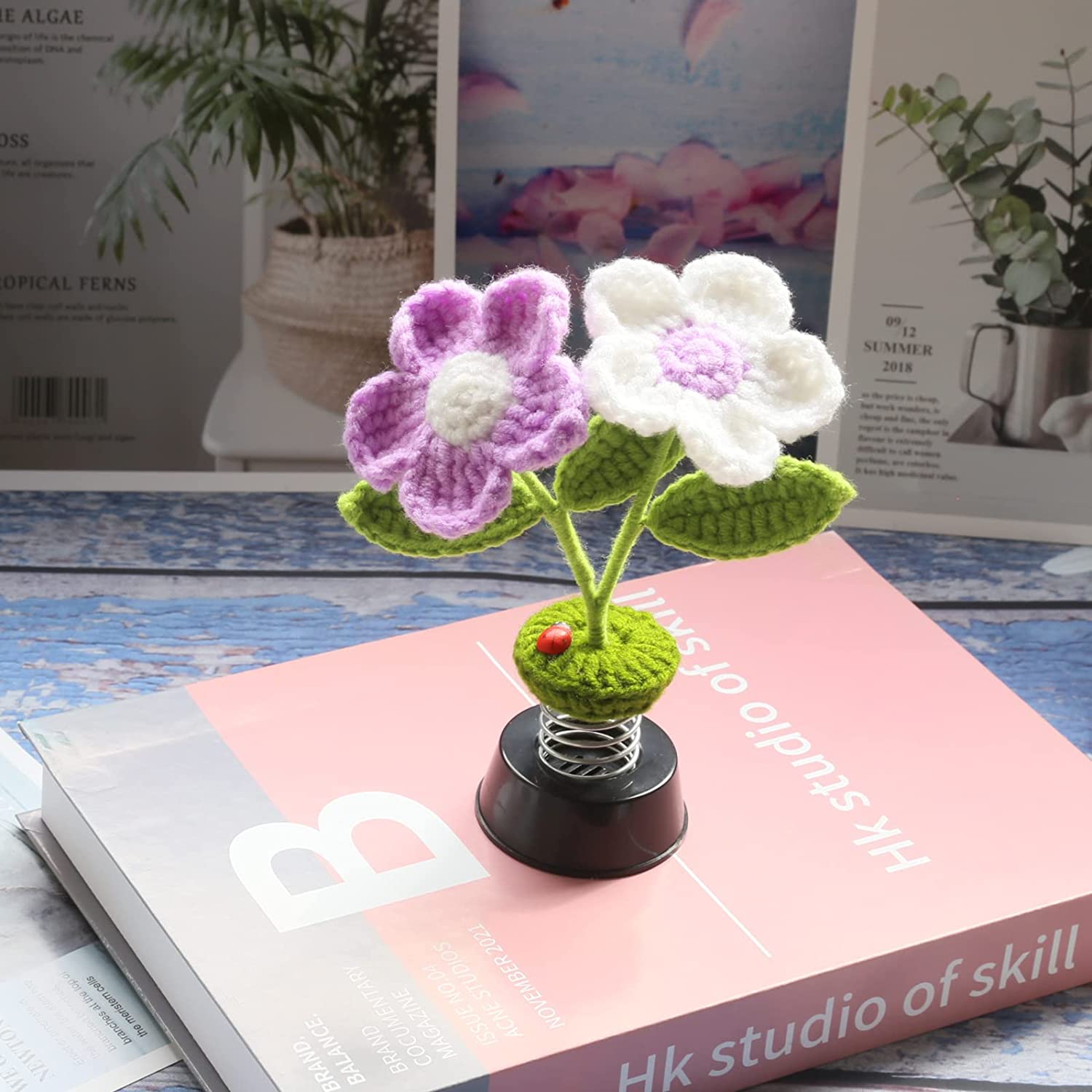 - 3. [Features] Sun flower Afghan crochet, stitch method, 100% handmade, the leaves can be adjusted arbitrarily, and the flowers will sway with the car and swing back and forth