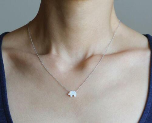 Women Jewelry GF Pendant 925 Silver Gold Plated Elephant Opal Chain Necklace