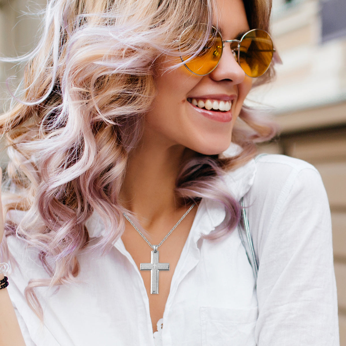 Women Stainless Steel Bracelet & Cross Pendant Necklace Set