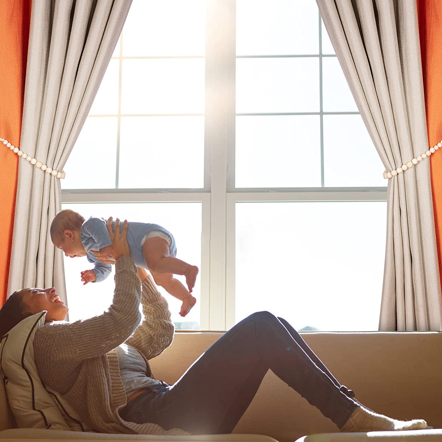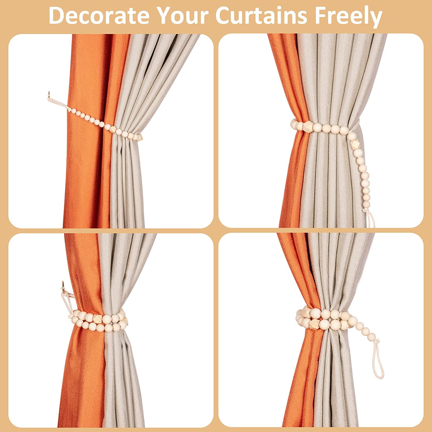 - High-Quality MaterialThese tiebacks for drapes are hand-made with natural wooden beads and cotton rope. Smooth, non-toxic, woody smell, corrosion-resistant, durable, perfect for protecting and decorating your curtains.