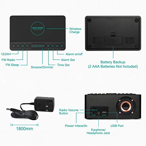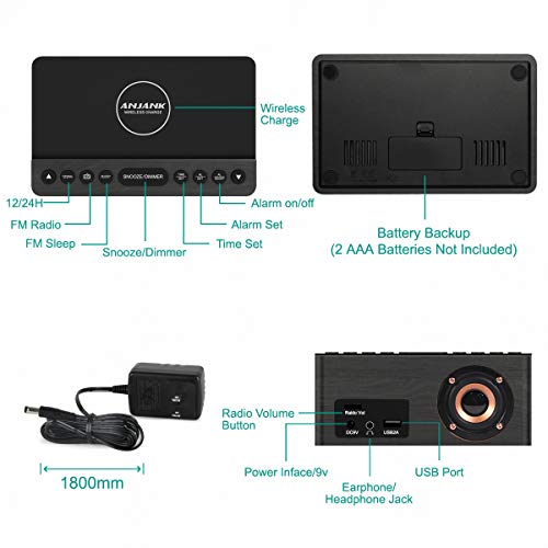 - 【10W FAST WIRELESS CHARGING】Unique top non-slip charging design ! ANJANK alarm clock supports 5W/7.5W/10W adaptive charging, which can charge your smart phone with Qi-enabled function quickly and easily. Besides, it also features an USB port to charge other electronic devices, such as a second phone, powerbank or smartwatch.