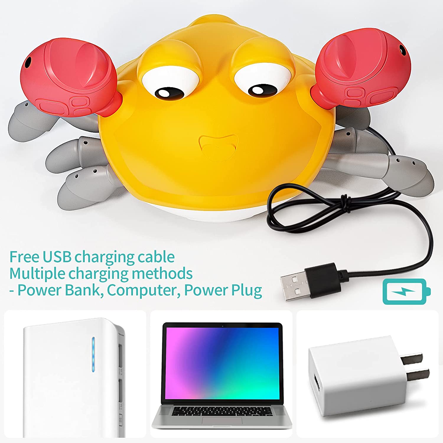 Yellow Crawling Crab Toys w/ Light Up, Interactive Musical w/ Automatically Avoid Obstacles, USB Rechargeable